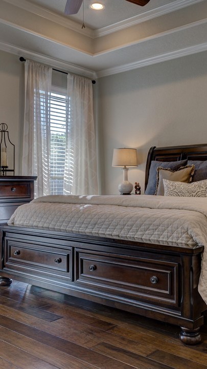 The female protagonist runs into the room