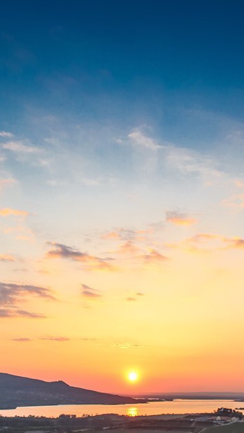 It was a truly sunny day. There was not a cloud in sight, and the breeze was cool.