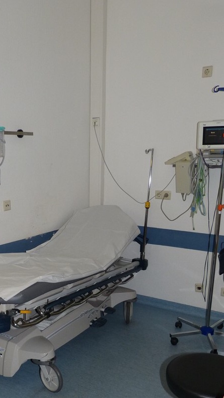 Doctors and nurses rush to the machine that is beeping loudly.