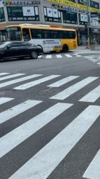 (He runs towards Jiyoon, only looking at the traffic light, without seeing the speeding car that was running the red light)