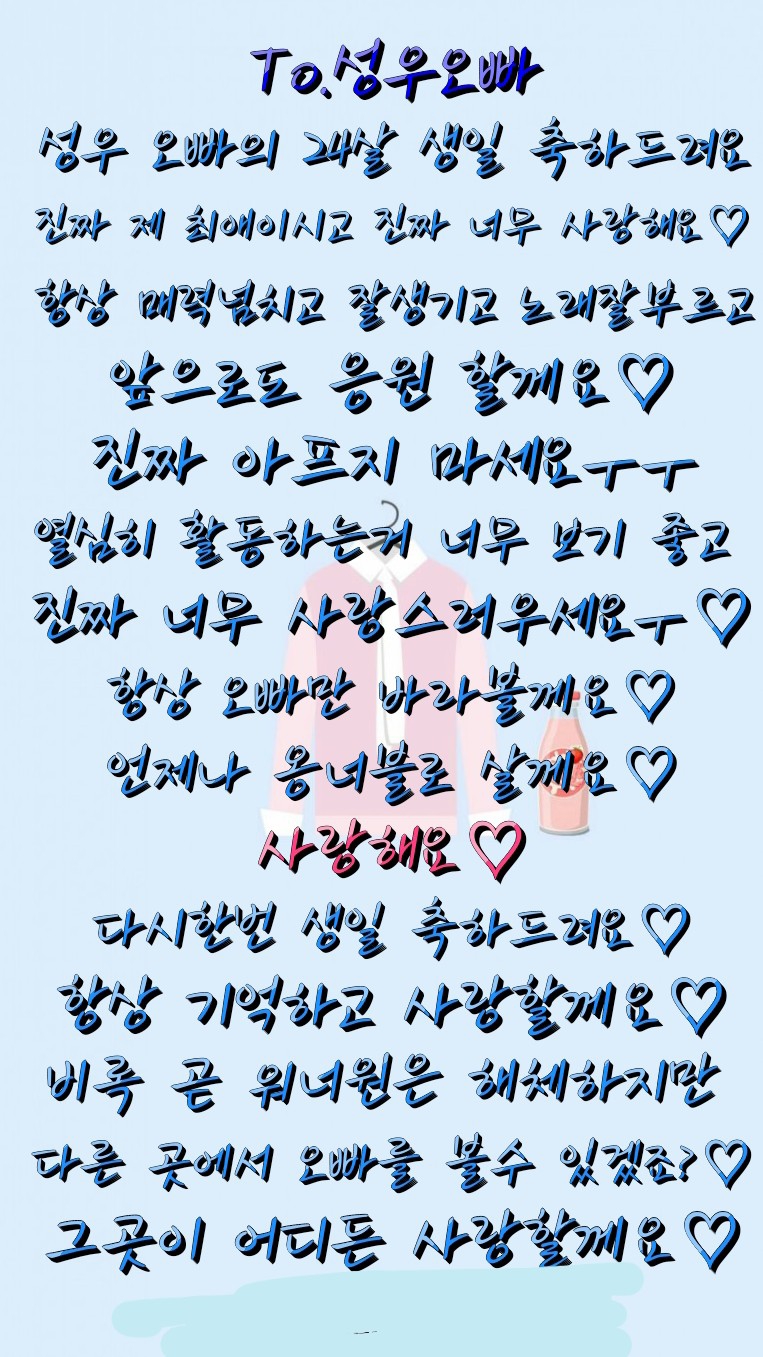 성우야ㅜㅜ 너의 잘생기고 노래잘부르고 춤잘추는 모든게 완벽한 성우를 좋아해서 너무 행복해ㅜ❤