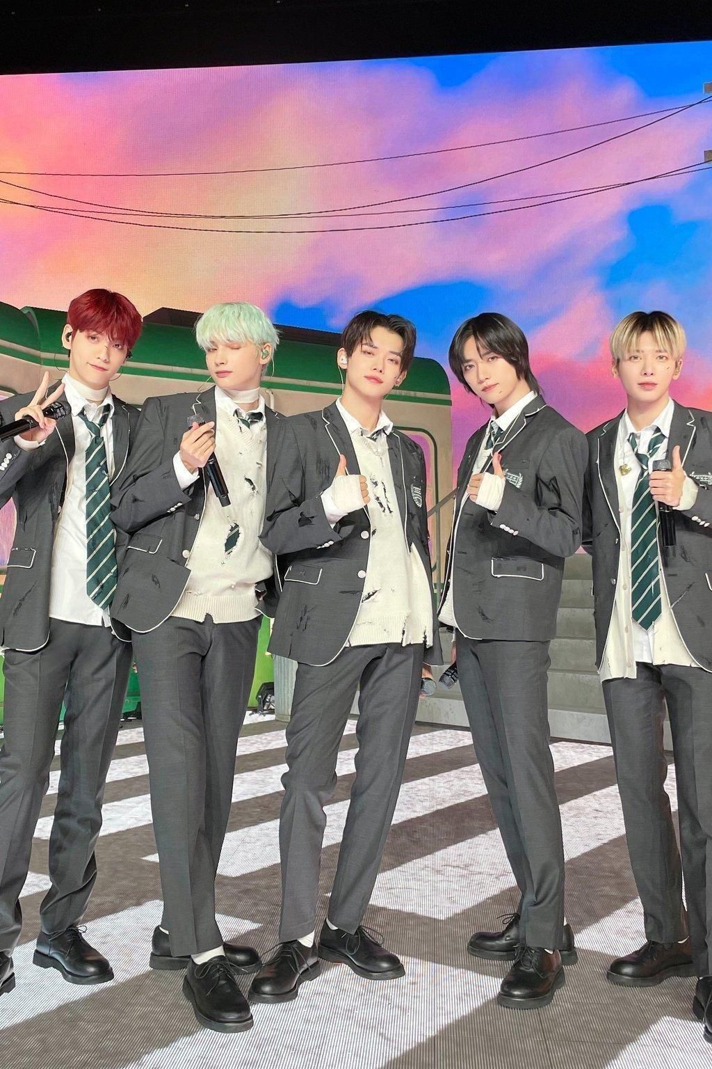 (Jisoo crying while leaning on Beomgyu's shoulder)