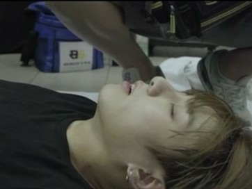 정국은 침대에 누워 아파하고 있었다
