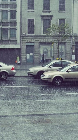 Suddenly, a light rain started falling, and then suddenly, a considerable amount of rain started pouring down, as if a hole had opened in the sky...