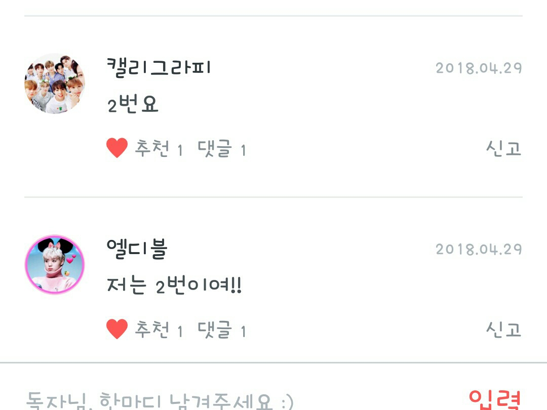 총 네분이 투표를 해주셨는데 만장일치로 2번이 됬네여!!