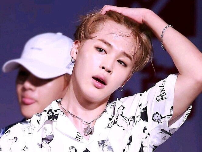 Jimin strokes and straightens the part of his hair that was grabbed earlier.