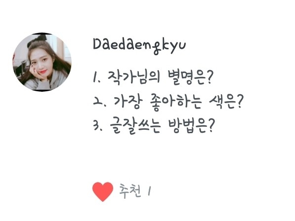 3. My favorite author is... I like Moon Dae-bak, and I respect Yawol! There's a writer named Kim Jeong-jang, and I like him too! (Jeong-jang isn't on this app^^)