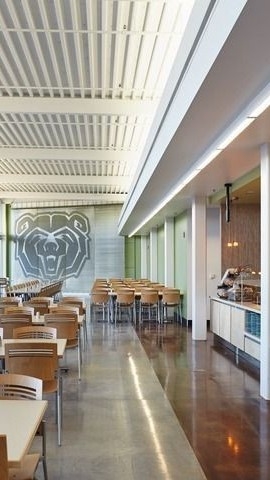 They ate quietly in the crowded cafeteria.