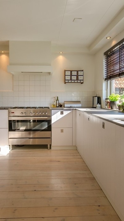 A small dance in the kitchen that is spacious enough for one person.