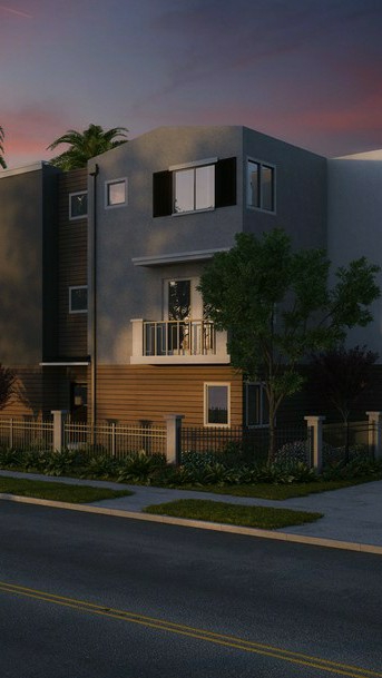 The heroine opens the door and enters the house.