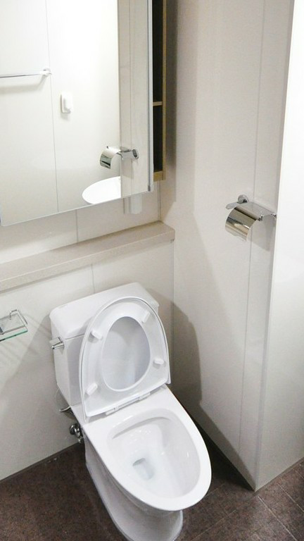 Woof.. (flushes water and washes hands)