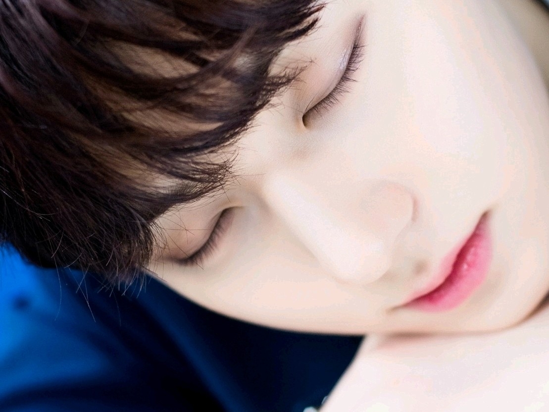 (Tossing the female protagonist's hair) Even sleeping is lovely.. haha