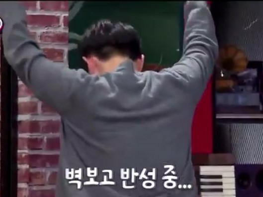 Seong-un didn't notice the water spilled on the floor and stepped on it, slipped, and fell.