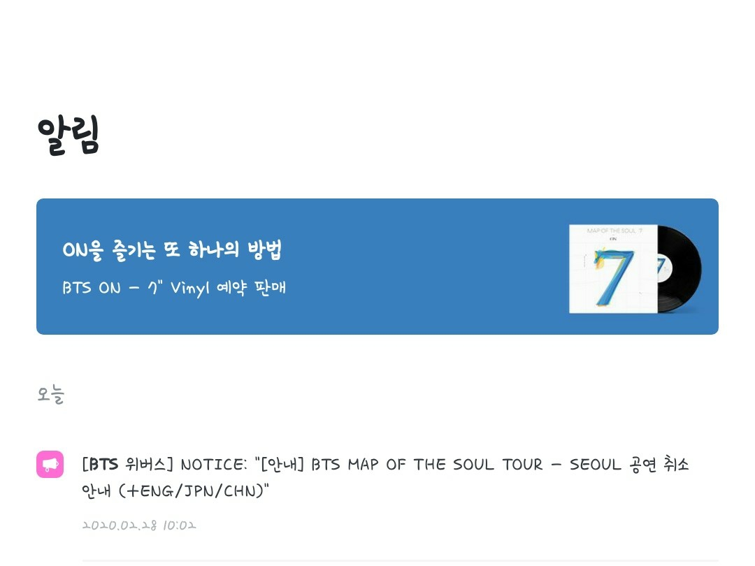 A Weverse notice that appeared one day