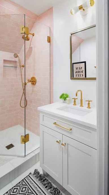[\ as soon i get up i go to restroom to take a shower ]