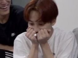 Jihoon hit his head on a pillar earlier and it was already hurting so much, and now he's hitting him hard. Isn't he blushing?