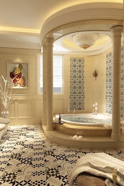 The heroine goes into the bathroom, holding back her laughter.