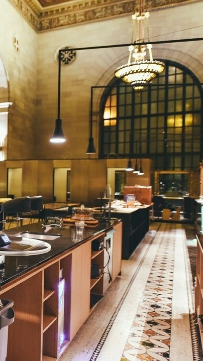 Like a glass garden, the glass windows, much taller than the person, caught the morning sunlight and softly illuminated the interior of the cafe.