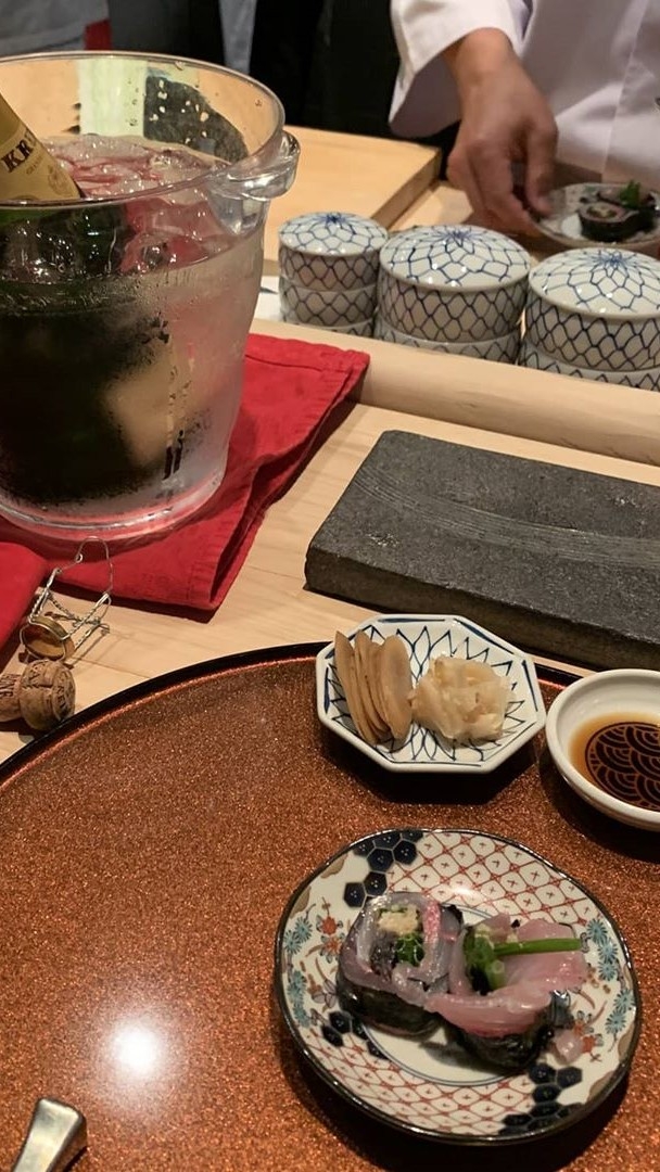 As I was feeling good, I started joking around with Jungkook and since we couldn't communicate anyway, I pretended to feed him sashimi with chopsticks.