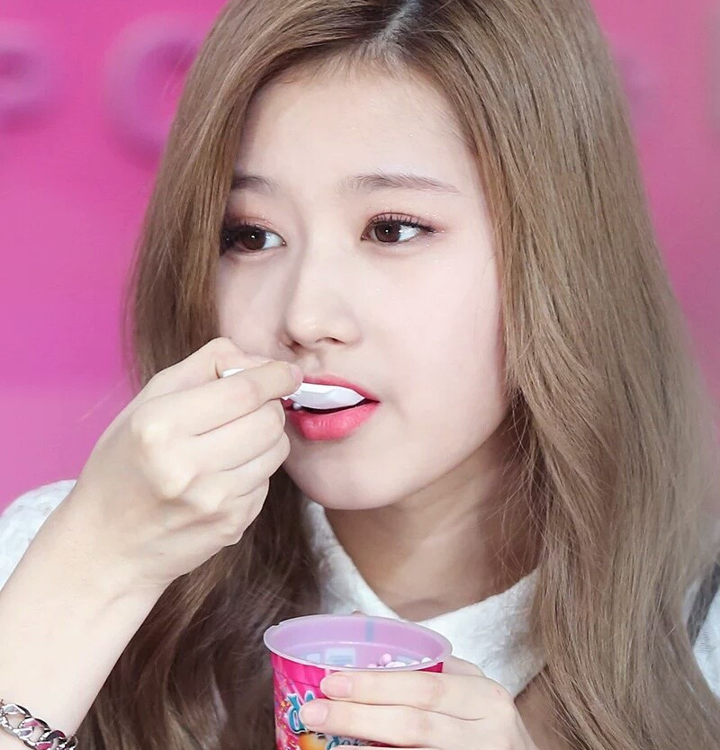 Sana shrugged, then put the ice cream spoon she had been holding in her hand into her mouth.