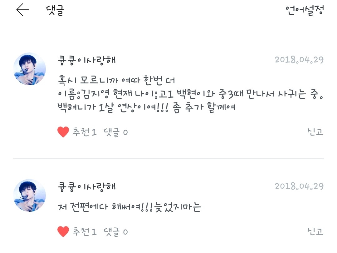 Right now, the two of us are the most famous couple in our high school. My brother has the nickname Jiyoung Baragi and I have the nickname Hyun-i Bara. Haha
