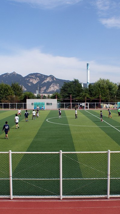예리가 입학한 학교는 뒤에 멋진 산이 있어 풍경이 좋고 운동장, 교실, 놀이터 모든게 넓고 좋았다.