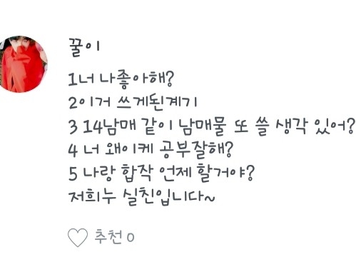 5. Hmm... All of Junseok Minho Jimtaekook's writings are fun.