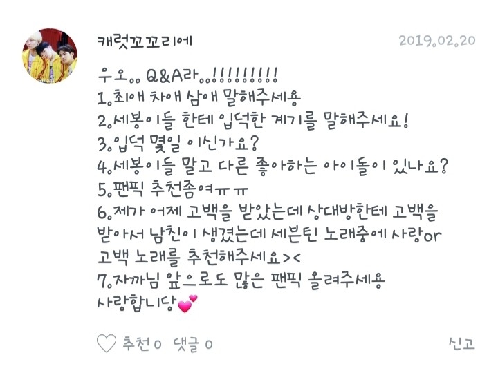 2. The reason I became a fan of Sebong! Hmm.. I originally liked Wanna One, and from that time on, I was interested in Seventeen, and then it was the time of Thank You's comeback, and I became a fan after seeing the Thank You stage^^