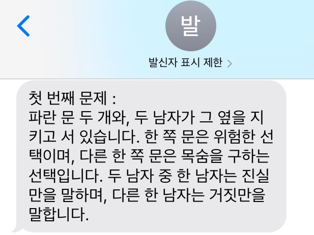 But if the person I asked were telling the truth, I would point to the door of the person who lied, not my own door.