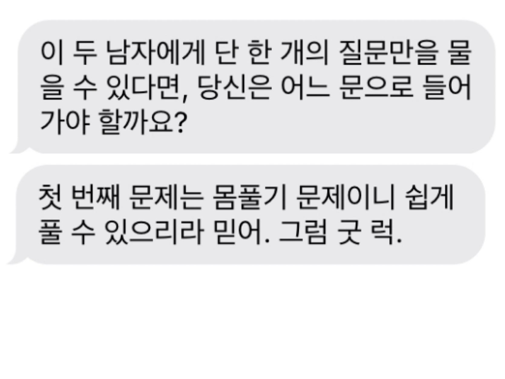 Then you have to go to a place other than the door that the two people are pointing to.