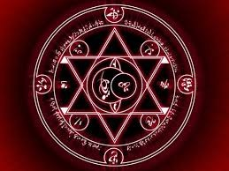 A red magic circle was created, and a blade of flame shot out from within it and flew.