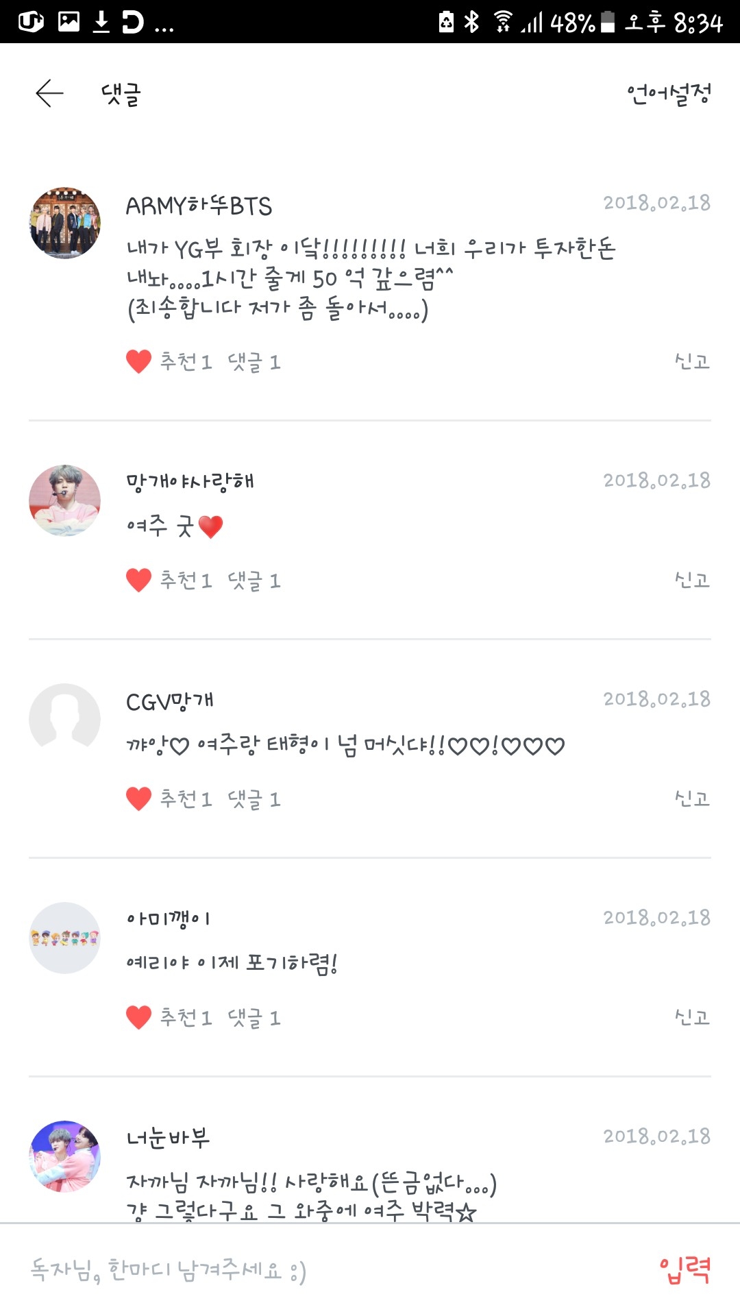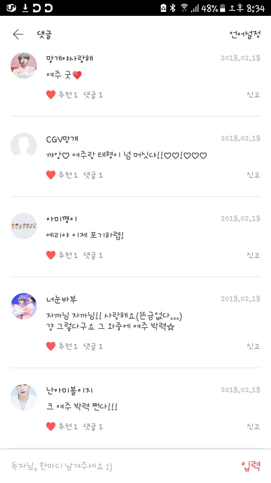 허.....그쪽한테 말한거 아니구여 그쪽 옆에 여.자 분한테 말한거거든요??