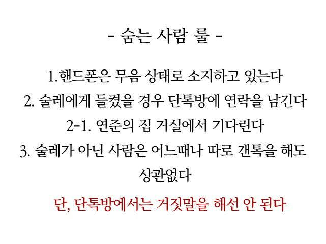 (Uh..;;) Uh..uh! Really? I was also hiding in the guest room on the first floor of Yeoju's house.
