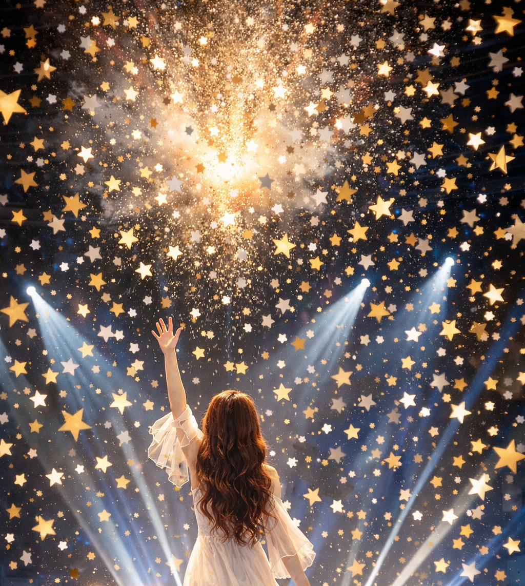 Confeti en forma de estrellas se esparció por toda la sala de conciertos.