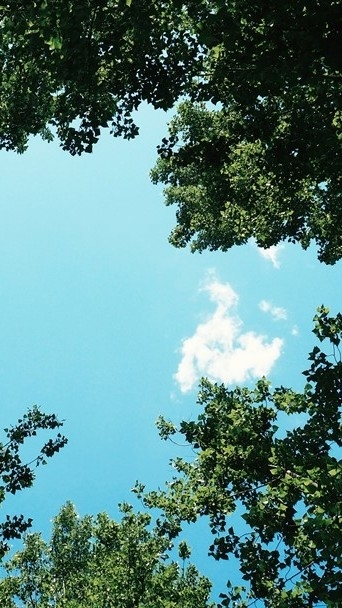 El cielo de verano es más claro que en otras estaciones. Solo con verte de pie frente a ese cielo azul de fondo...