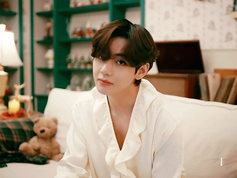 _La protagonista femenina camina frente a Taehyung y cuidadosamente le quita la harina de la cabeza.