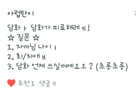 P. Edad R. Hmm... Edad... Estaba preocupada sobre si revelarlo o no porque soy mayor de lo que pensaba(?)... Ya pasé un poco la mitad de mi adolescencia. ㅠㅠ