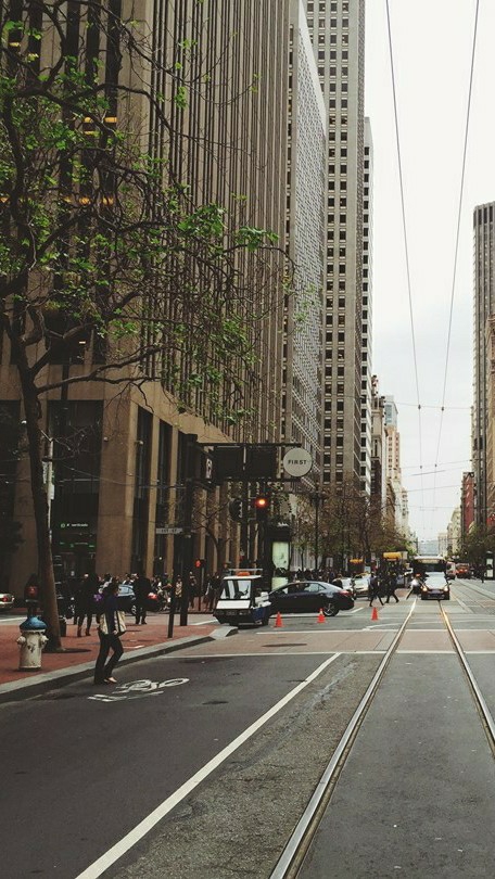A medida que los coches desaparecen gradualmente, la gente se prepara para moverse, como si el semáforo estuviera a punto de cambiar.