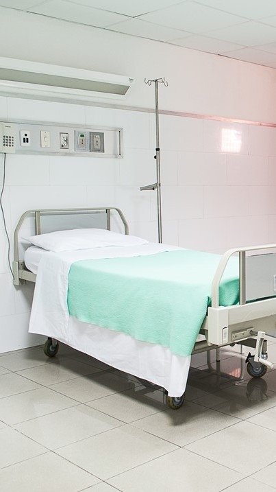 La protagonista femenina sale de la habitación del hospital y se dirige directamente al coche.