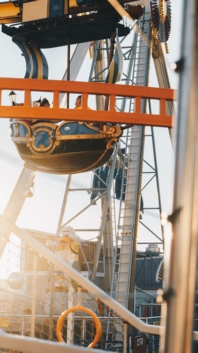 Entonces, no podíamos subirnos a atracciones de miedo como el Viking o la montaña rusa, así que decidimos montar en autos chocadores y en la noria y luego salir a comer.