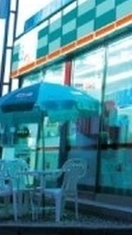 Y me senté bajo la sombrilla colocada frente a la tienda de conveniencia.