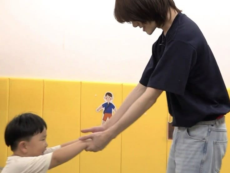 Jooyeon interceptó la mano de Soobin y lo ayudó a levantarse. Luego, sujetó con fuerza su mano levantada.