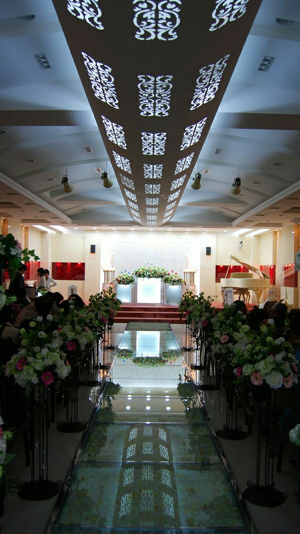 Después de que comenzó la comida, los dos se tomaron de la mano y caminaron por el sendero cubierto de flores al ritmo de una canción.