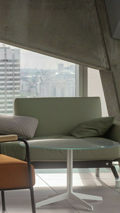Y entonces apareció una figura angelical sentada en un sofá sobre una plataforma baja.