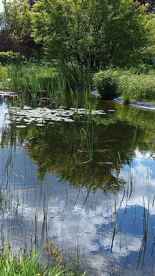 Bosque detrás del estanque-