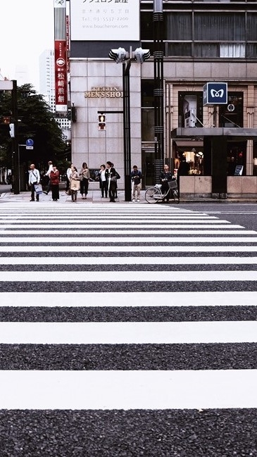 (Deteniéndose en el paso de peatones)