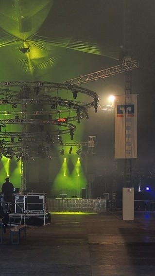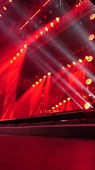 Ah, tengo miedo a las alturas, así que no pude subir durante los ensayos, así que creo que es mejor simplemente disfrutar del escenario desde abajo en lugar de no poder actuar en el escenario desde arriba, y mis tobillos están bien jaja.