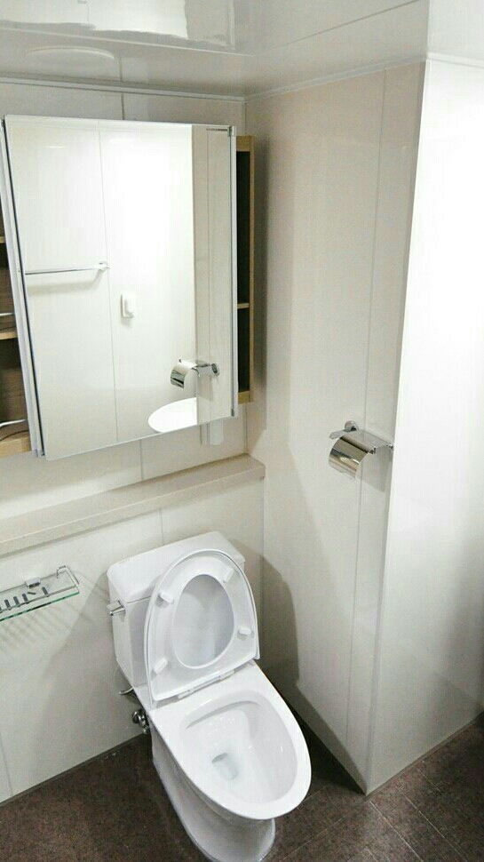 Súbete al inodoro junto a Nayeon y mira hacia el baño.