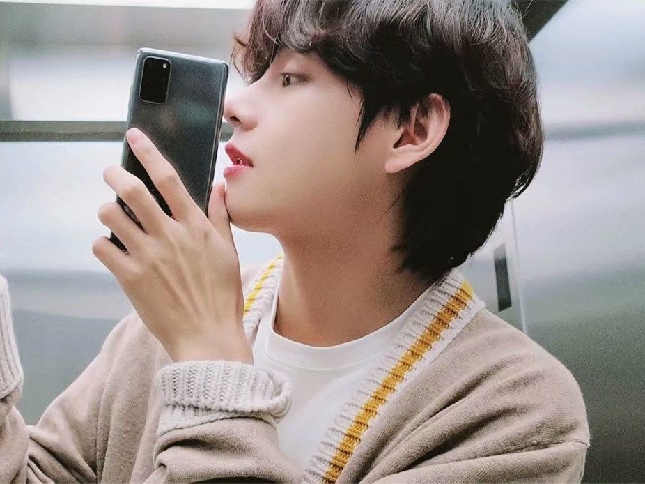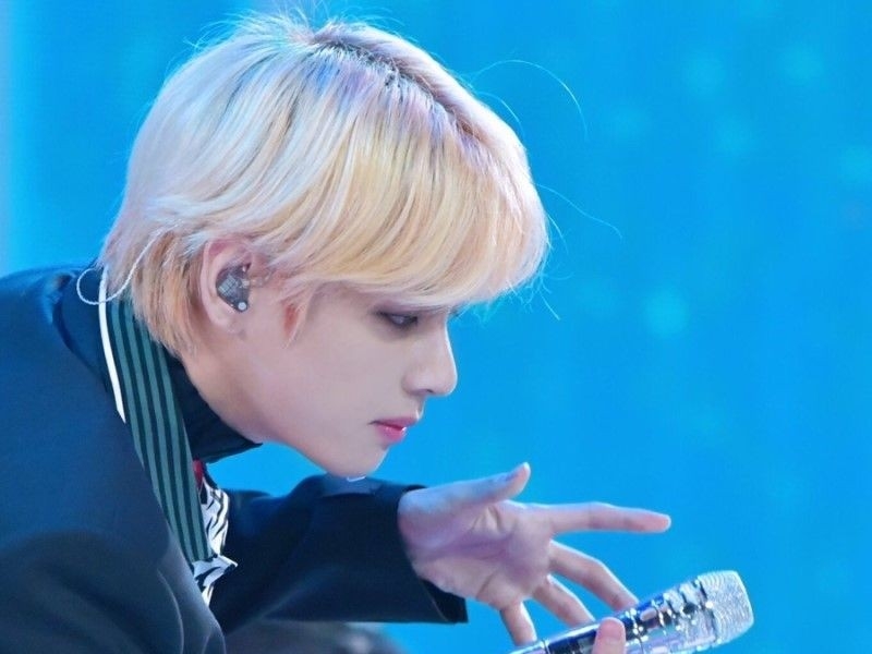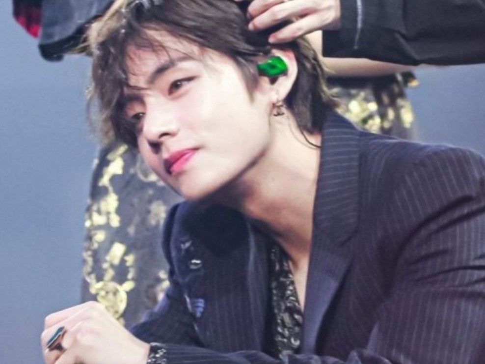 La mujer que le dio a Taehyung un beso en la mejilla camina detrás de él y agita la mano.