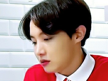 J-Hope se ríe disimuladamente, toma un tomate que está frente a él y se lo pone a Yeoju en la boca.
